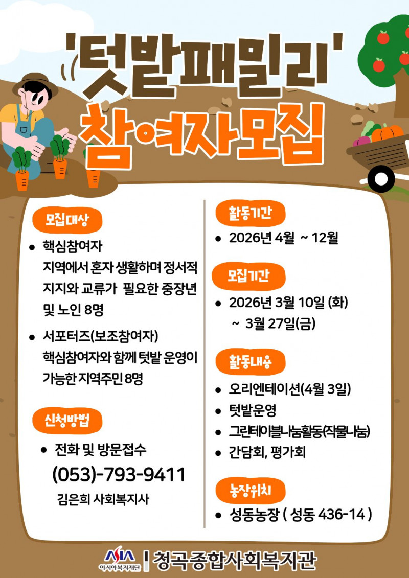 텃밭을 활용한 사회관계망형성 사업 '텃밭패밀리'를 진행합니다.