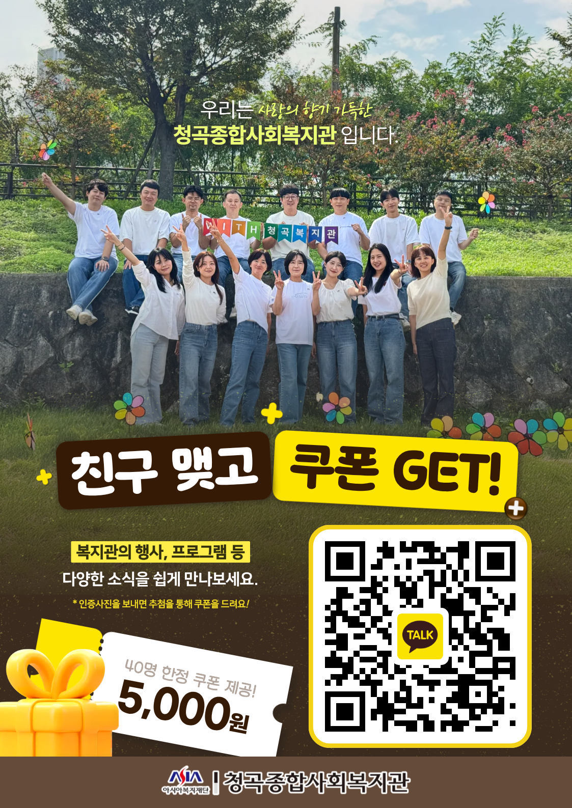 복지관 사업에 관심 있는 분들 모두 지금 바로 친구추가하고 이벤트 참여 GO!
