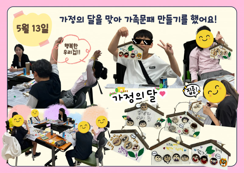 5월에는 가정의 달을 맞아 가족 문패 만들기, 사회성 향상 및 협력활동을 위한 신문지 놀이활동