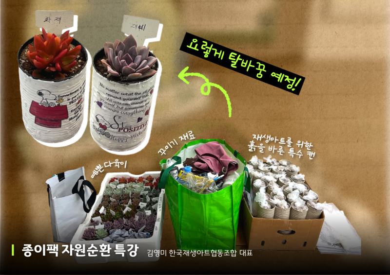 누구나 쉽게 키울 수 있는 다육식물을 활용해, 생활 속 재활용품인 캔과