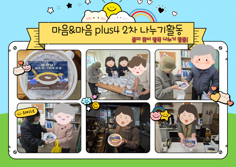 마지막으로 9월, 12월에 진행된 나누기활동에서는 추석을 맞아 송편을, 동지를 맞아 팥죽을 직접 준비하여