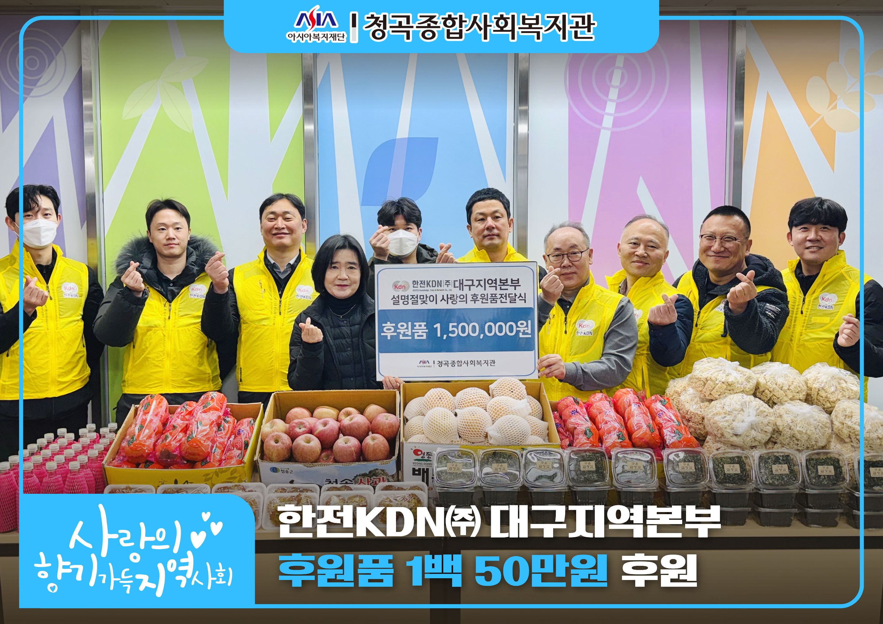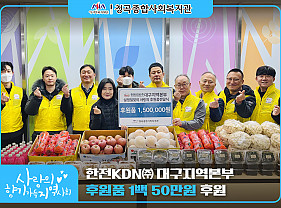 한전KDN㈜대구지역본부에서 1백 50만원 상당의 후원품을 후원해 주셨습니다.