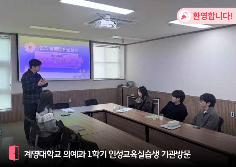인성교육실습을 진행하기로 한 계명대학교 의예과 학생들과 첫 만남을 가졌습니다.