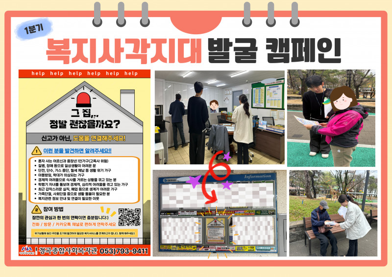 주민 참여 기반의 촘촘한 발굴 체계를 구축하여 위기상황을 예방하고자 1분기 복지사각지대 발굴캠페인을 실시하였습니다.