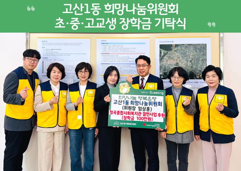 고산1동 희망나눔위원회에서 장학금 100만 원을 후원해 주셨습니다.