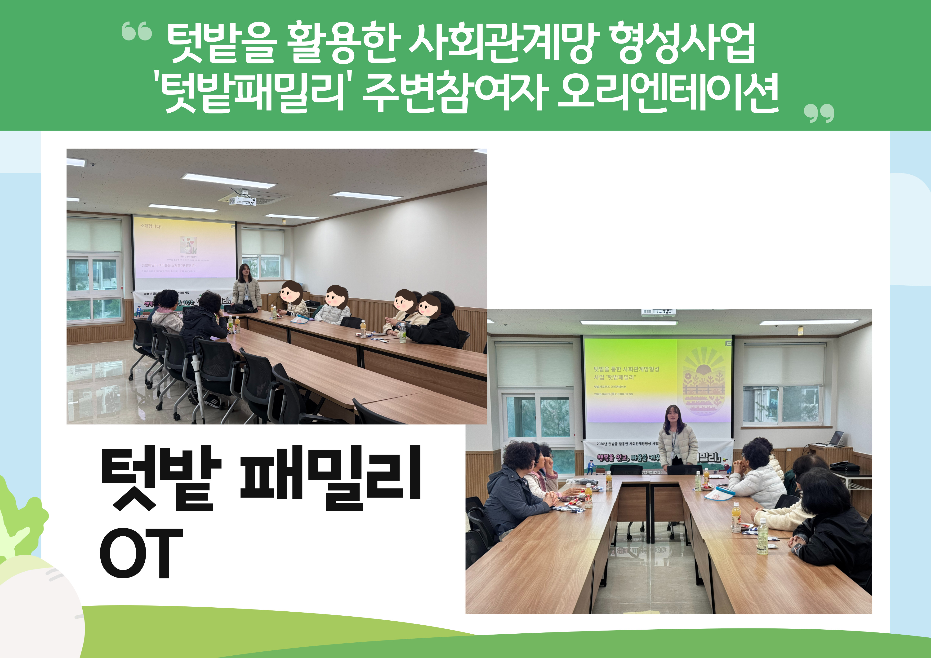 텃밭을 활용한 사회관계망형성사업 '텃밭패밀리' 주변참여자 오리엔테이션을 진행하였습니다.