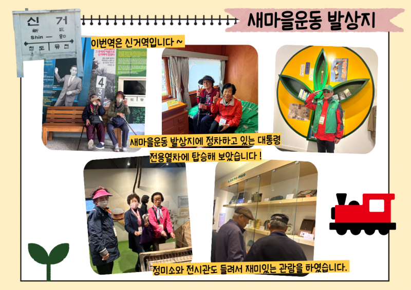 새마을운동발상지에서 대통령 전용기차 내부도 살펴보고 새마을운동에 대한 설명도