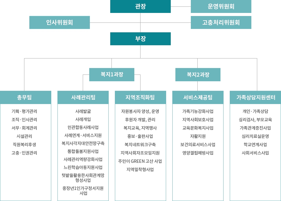 | 사례관리 | 과장 | 이OO | 사례관리 총괄관리, 시설물 관리 |